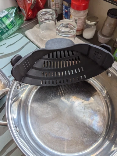 FlowEase™ – Everyday Silicone Clip-On Pot Strainer for Effortless Draining